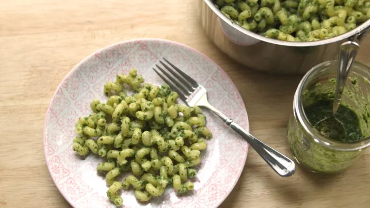 Carrot Top Pesto is a bright, vibrant, fresh sauce perfect tossing with pasta or spreading on sandwiches this spring and summer.