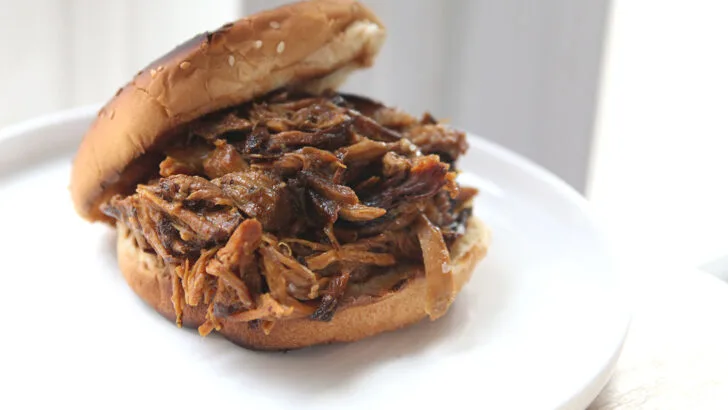 Robust and rich, this pulled pork can be enjoyed in so many ways. But while the sauce is made with apple juice and honey, it’s more savory.